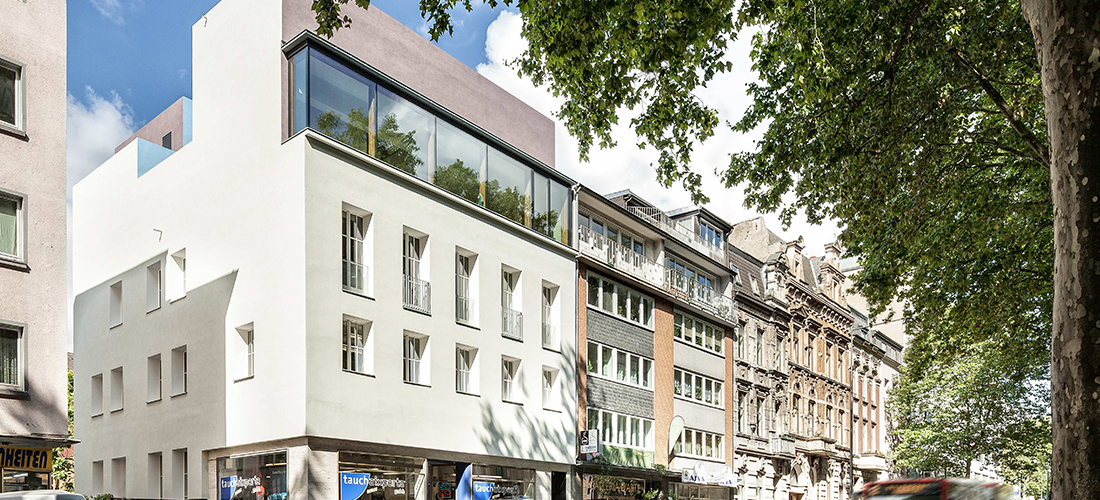 Holz kommt an – auch in den Innenstädten. Die Vorteile des modernen Holzbaus zeigt in anspruchsvoller Weise, wie gut der Baustoff in der Nachverdichtung funktioniert: Das Bestandsgebäude aus den frühen 1950er Jahren in Aachen wurde umfassende energetisch saniert und auf beeindruckende Weise aufgestockt.