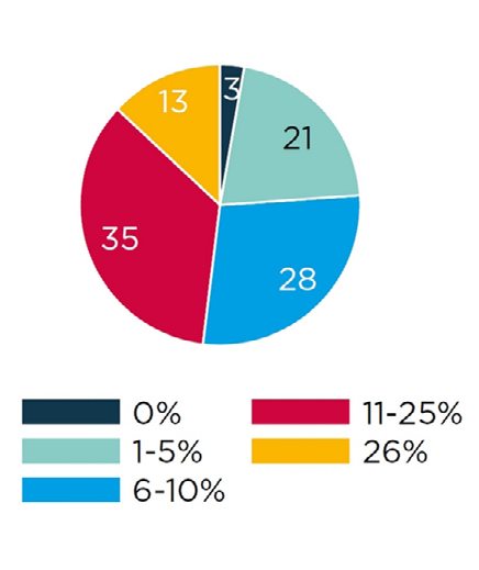 So schätzen die befragten Bauakteure, dass der Fehlerkostenanteil am gesamten Branchenumsatz in 2019 bei durchschnittlich 15,4 Prozent lag (Mittelwertberechnungen basierend auf den Ergebnissen der Grafik).