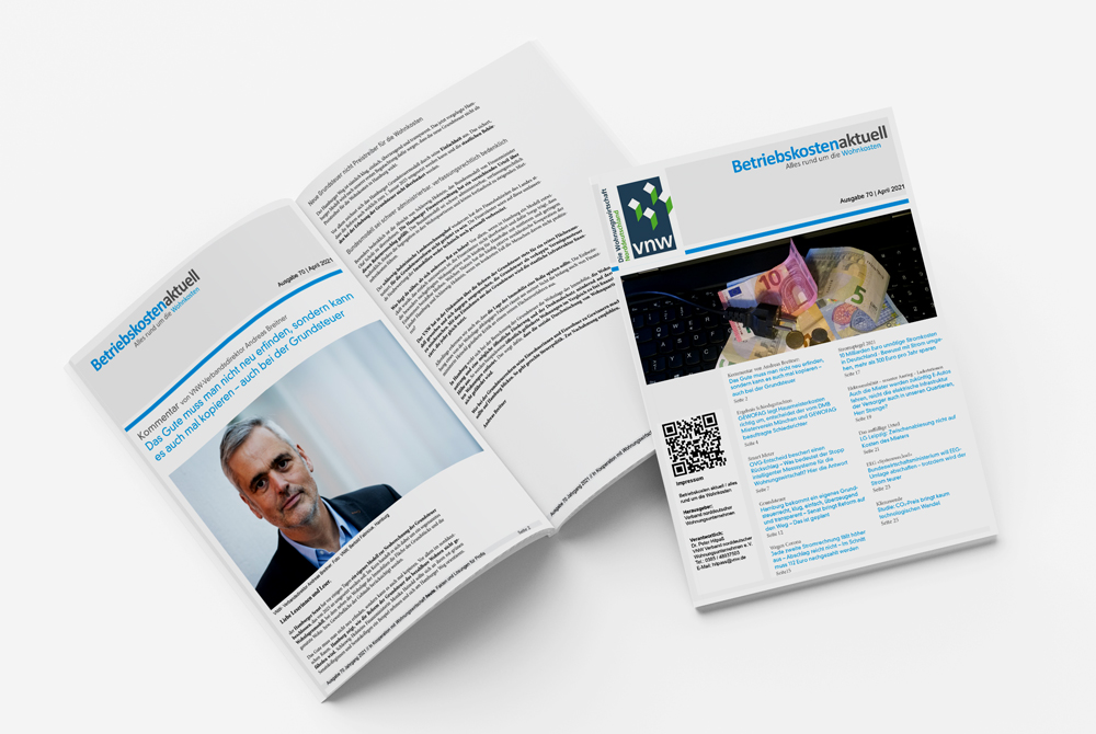 Hier können Sie alle Artikel der April-Ausgabe 2021 der Betriebskosten aktuell Ausgabe 70 in einem PDF speichern und lesen. Unter anderem handelt die Ausgabe von diesen Themen: