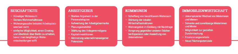 Berlin boomt und zieht Talente aus aller Welt an, doch der Erfolg der Hauptstadt wird gebremst durch den eklatanten Mangel an Wohnraum. Längst ist das Problem in der Presse vom Lokalteil in die Wirtschaftsseiten gewandert und wird darüber hinaus in den Vorstandsetagen der großen Untenehmen heftig diskutiert. Das Thema betrifft sowohl nationale und internationale Unternehmen, die sich in Berlin ansiedeln, als auch in Berlin ansässige Unternehmen, die expandieren. Wer Fachkräfte braucht, die nicht bereits in der Hauptstadt leben, kann diese nur erschwert mit passendem Wohnraum versorgen. Die Krise kann das Wachstum am gesamten Wirtschaftsstandort bremsen.