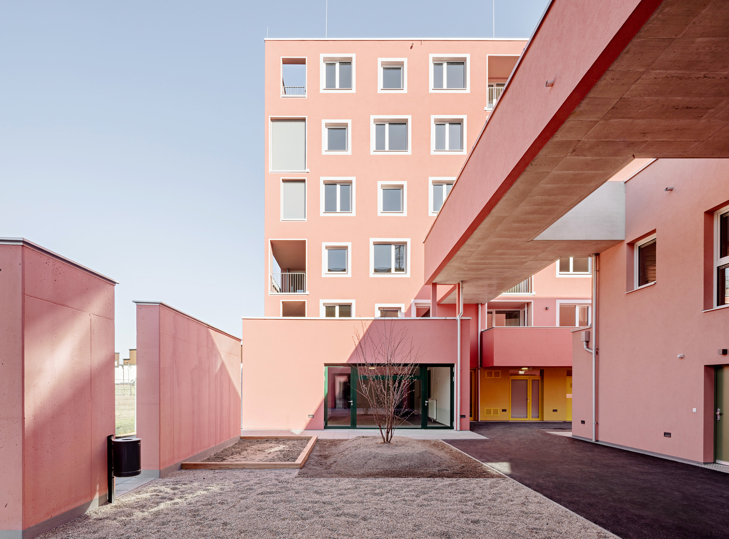 Dabei war der Start der Anlage mit 84 Wohnungen (Bauträger: Neues Leben) an der Adelheid- Popp-Gasse im Stadtentwicklungsgebiet „Neu Stadlau“ auf den ehemaligen Waagner- Biró-Gründen holprig. Im Bauträgerwettbewerb für den Bauplatz waren ausschließlich Baugemeinschaften zugelassen. Der Knackpunkt daran: Nach Veröffentlichung der Auslobung durch den Wohnfonds Wien blieben nur sechs Wochen Zeit bis zur Abgabe. Selbst für erfahrene Baugruppenplaner wie Architekt Markus Zilker von einszueins Architektur „eine extrem kurze Zeit, um ein Konzept zu finden, noch kürzer, um eine Baugruppe zusammenzustellen“.