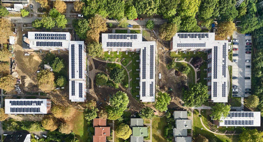 Ergänzend werden auf allen Gebäuden von einem Contractor Photovoltaikanlagen installiert, wobei die Mieter über ein Mieterstrommodell versorgt werden und einem günstigen Stromtarifen profitieren.