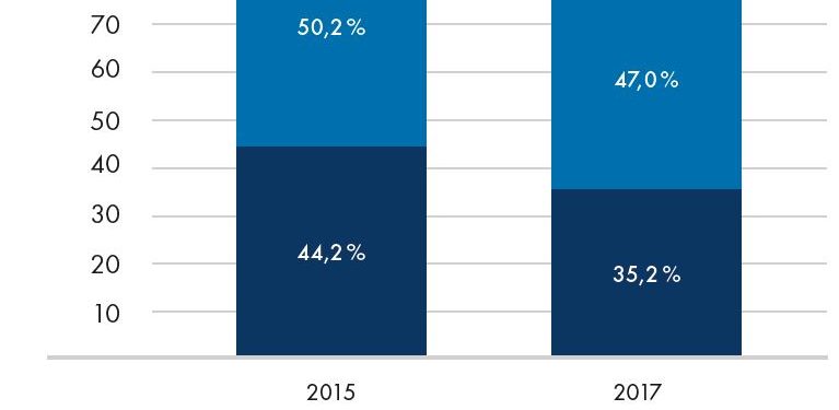 Nur 35,2 Prozent der befragten Verwaltungsunternehmen gaben an, 2017 energetische Sanierungen begleitet zu haben. Beim 4. DDIV-Branchenbarometer lag ihr Anteil noch um neun Prozentpunkte höher.
