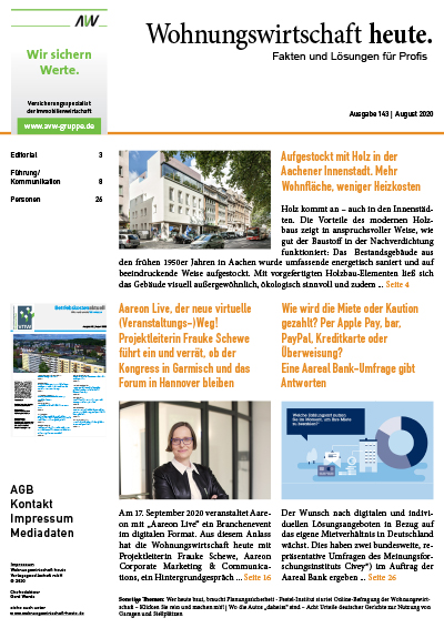 Hier können Sie alle Artikel der August-Ausgabe 2020 der Wohnungswirtschaft heute. Ausgabe 143 in einem PDF speichern und lesen.