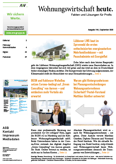 Hier können Sie alle Artikel der September-Ausgabe 2020 der Wohnungswirtschaft heute. Ausgabe 144 in einem PDF speichern und lesen.