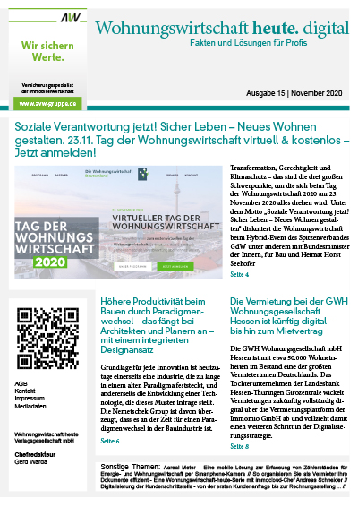 Hier können Sie alle Artikel der Wohnungswirtschaft heute. digital Ausgabe 15 im November in einem PDF speichern und lesen.