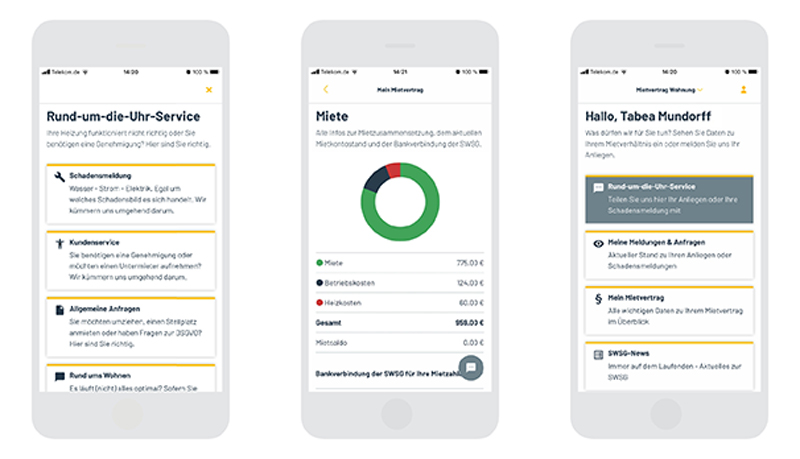 Die Stuttgarter Wohnungs- und Städtebaugesellschaft mbH (SWSG) verfolgt einen breiten Digitalisierungsansatz. Dazu gehört auch die im Oktober 2020 eingeführte SWSG-MieterApp. Über sie können die mehr als 50.000 Mieter mit ihrem Wohnungsunternehmen kommunizieren, auf dem Laufenden bleiben, Daten einsehen und ändern oder Schadensmeldungen abgeben – und das rund um die Uhr und ohne lange Recherche nach dem richtigen Ansprechpartner.
