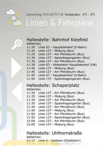 Die Wohnungsgenossenschaft Kleefeld-Buchholz hat das Digitalen Brett, als schwarzes Brett – interaktiv – und jetzt mit digitalem Busfahrplan