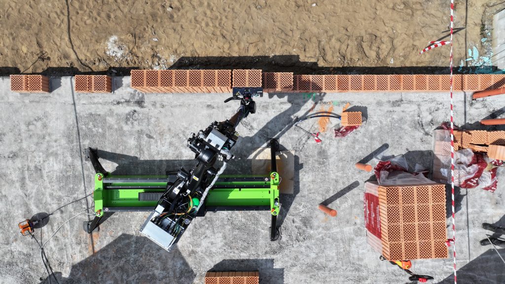 Der von Wienerberger entwickelte Ziegelroboter im Baustelleneinsatz.