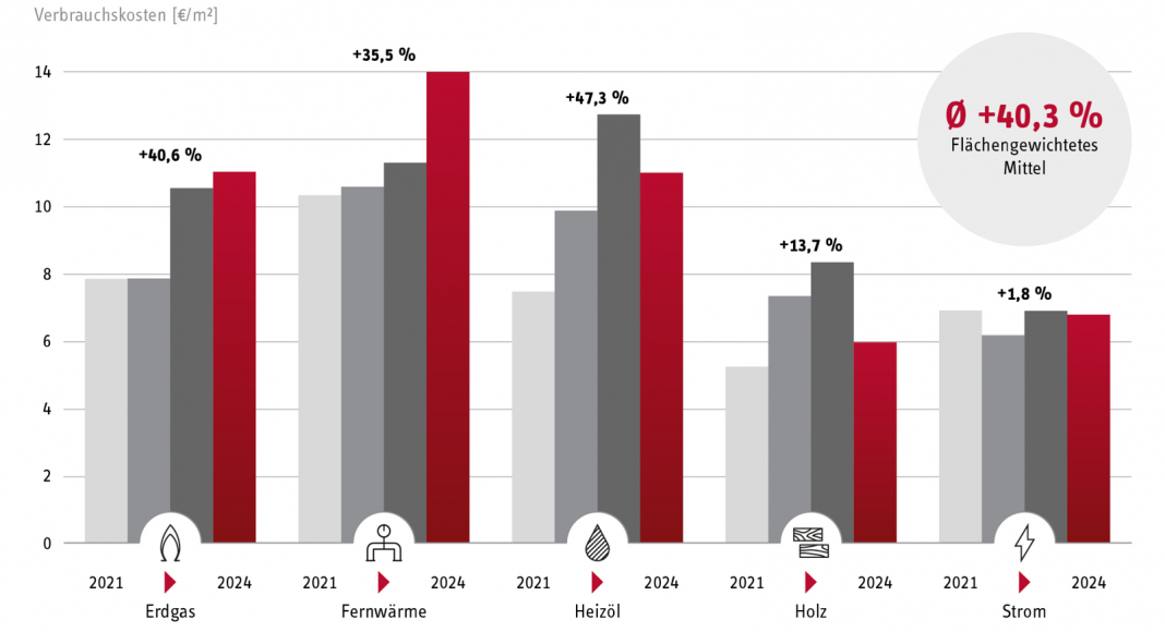 Die Verbrauchskosten für fossile Brennstoffe sind in den vergangenen Jahren dramatisch gestiegen, wie der „Techem Atlas 2025 für Energie, Wärme & Wasser“ berichtet: Pro Quadratmeter Wohnfläche verteuerte sich der Preis für Erdgas von 2021 bis 2024 um insgesamt 40,6 Prozent, bei Heizöl waren es 47,3 Prozent.