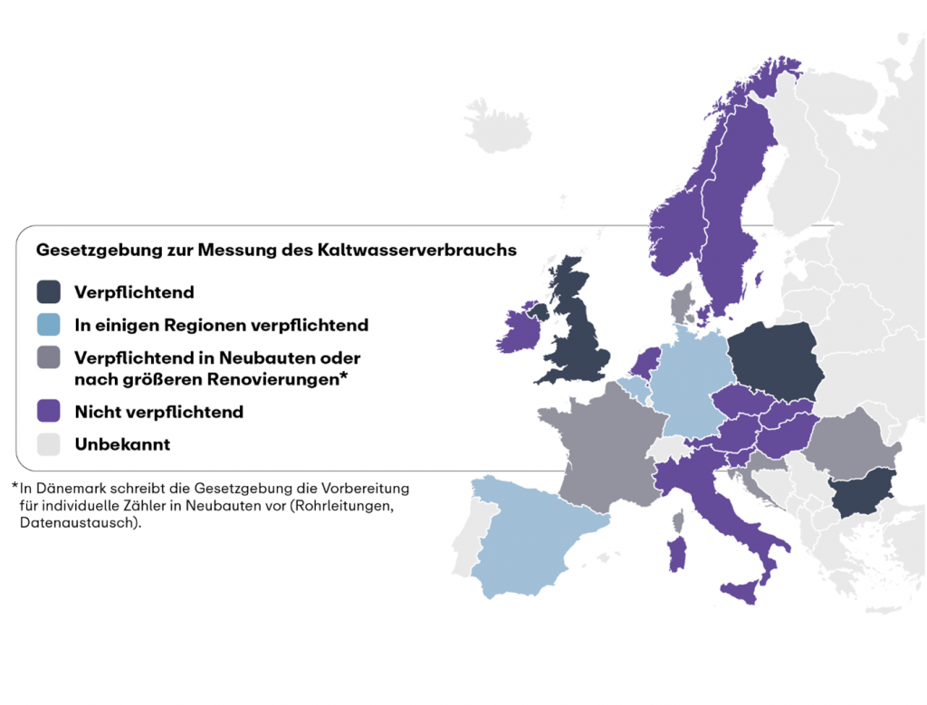 Doch die Realität in Europa ist ein Flickenteppich. Die folgende Karte zeigt, wie unterschiedlich die gesetzlichen Vorgaben zur Kaltwassermessung in den deutschen Bundesländern sind, von vollständiger Pflicht bis zu völliger Abwesenheit von Regelungen: