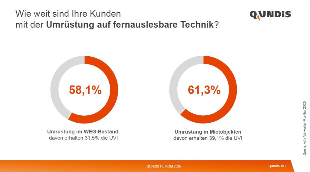 Studien, auf die sich QUNDIS bezieht, sehen derzeit rund 60 % der Bestände der Wohnungswirtschaft mit fernauslesbarer Technik ausgestattet – umgekehrt sind etwa 40 % noch umzurüsten. - Enge regulatorische Zeitfenster