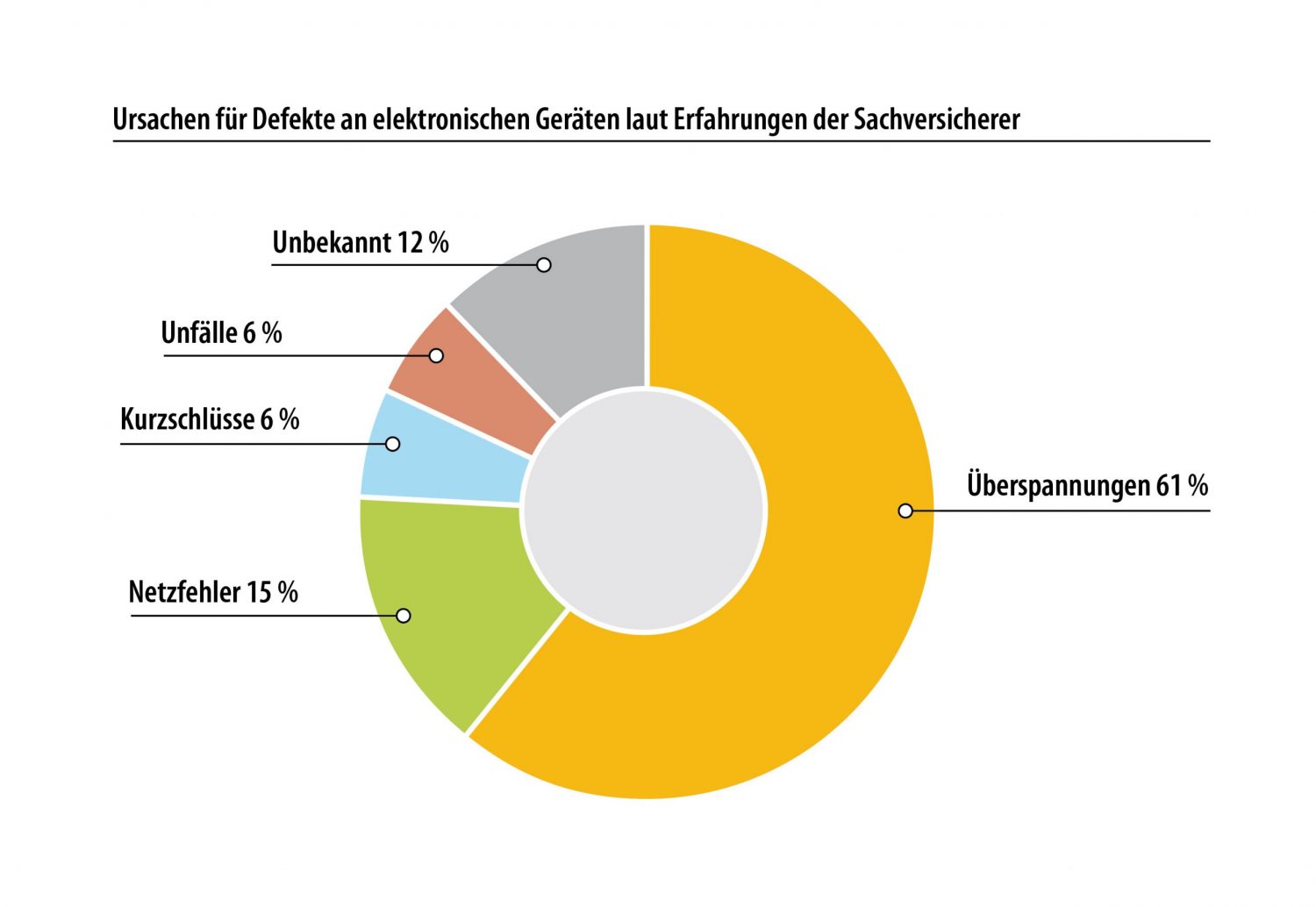 „Grund dafür sind die mit dem Blitzeinschlag verbundenen Überspannungen“, erklärt Oliver Born von der Initiative ELEKTRO+. Solch eine Überspannung breitet sich vom Einschlagsort bis zu einem Umkreis von ganzen zwei Kilometern aus. Dann liegen statt der üblichen 230 Volt Spannung für kurze Zeit mehrere zehntausend Volt auf den Elektroleitungen. „Ein Blitzableiter allein stellt hier keinen ausreichenden Schutz dar“, stellt Oliver Born fest. „Hier ist ein mehrstufiges Schutzkonzept gefragt, bestehend aus äußerem und innerem Blitzschutz.“