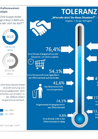 Kindergeschrei und laute Nachbarn, warten an der Kasse – der Alltag ist gespickt mit Situationen, die die Geduld und Toleranz auf eine harte Probe stellen können. Was bringt die Deutschen im täglichen Miteinander dabei besonders auf die Palme und wo erhoffen sie sich Toleranz? Eine Studie deckt es auf.