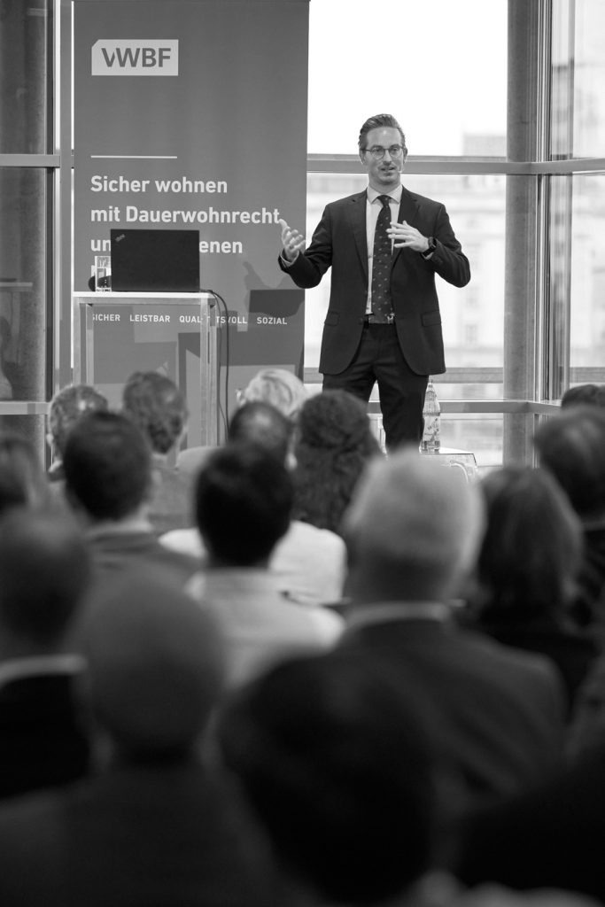 Christian Zenz, Abteilungsleiter für Wohnungs- und Siedlungspolitik im Wirtschaftsministerium, ging in seinem Referat auf die wohnwirtschaftlichen Rahmenbedingungen und die Grundprinzipien der Wohnungsgemeinnützigkeit vor dem Hintergrund geplanter bzw. diskutierter Reformvorschläge ein.