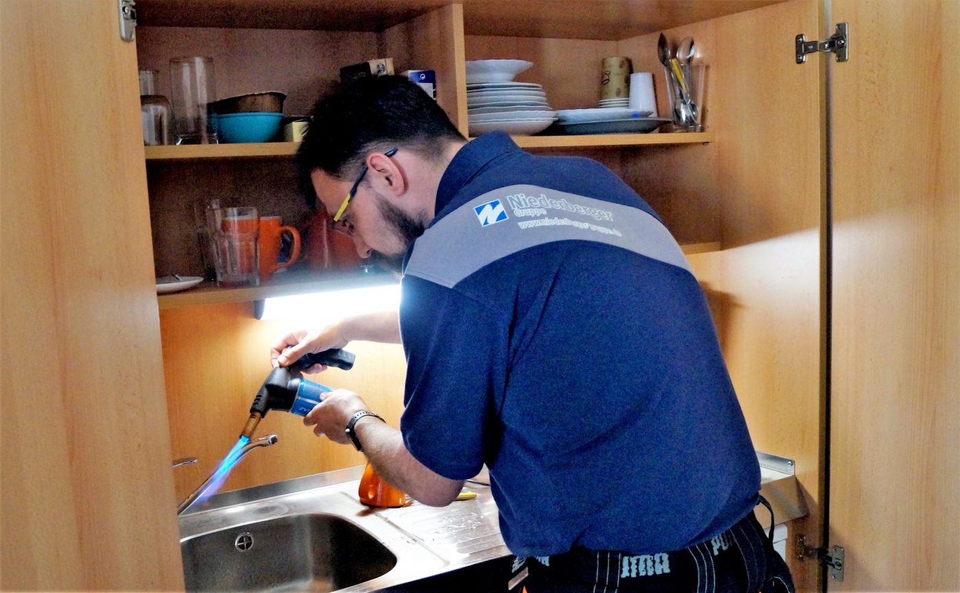 Damit dieses Risiko so gering wie möglich ist, gibt es Menschen wie Stefan Kerkow. Der 39-jährige Berliner ist Techniker bei Niederberger Berlin und sorgt mit seinen Kollegen dafür, dass das Trinkwasser in öffentlichen Einrichtungen, die wegen des Lockdowns geschlossen sind, sauber bleibt. Seine Aufgabe besteht vor allem in diesen Tagen vor Wiedereröffnung der Betreuungs- und Bildungseinrichtung darin, eine mögliche Kontamination mit Legionellen in Teilen der Trinkwasserinstallation festzustellen.