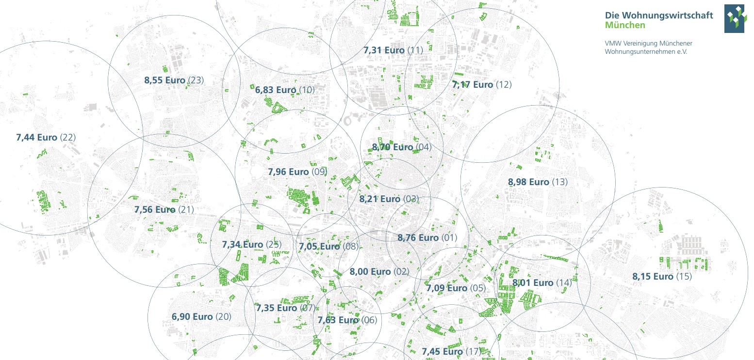 Die VMW-Durchschnittsmieten sind deutlich geringer als die marktüblichen Vergleichsmieten, die bis Ende 2019 bei durchschnittlich bei 20,37 Euro netto kalt (Erstbezug) und 18,67 bei Euro netto kalt (Wiedervermietung) lagen. Dabei sind die Unternehmen der VMW in allen 25 Münchener Stadtbezirken aktiv. Sie bieten einer breiten Mieterschicht gutes Wohnen mit leistbaren Mieten und sicheren Verträgen.