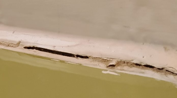 Defekte Silikonfugen an Dusch- und Badewannen: Wenn über Jahre unbemerkt Wasser einsickert, kann es teuer werden. Hier ist regelmäßige Wartung und Aufklärung der Mieter wichtig. Schadenpräventionen eben. Ein Baustein, um bezahlbares Wohnen möglich zu machen. Foto: Betriebskosten aktuell / Gerd Warda
