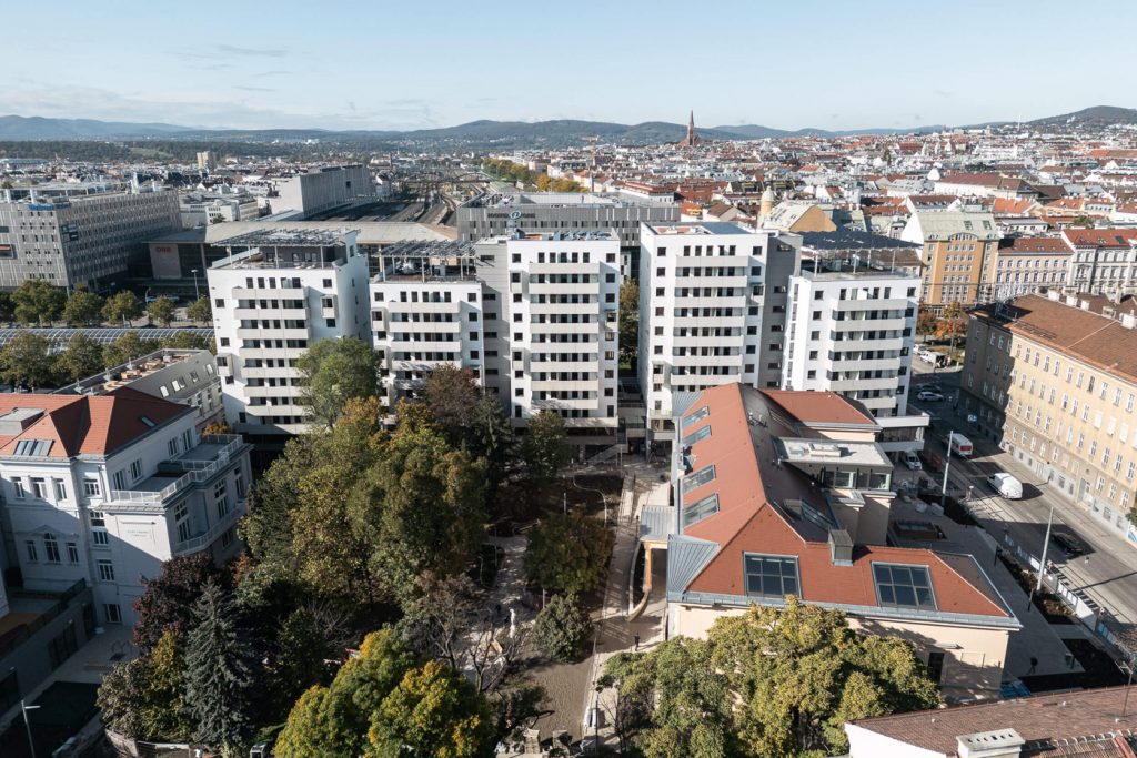 Rund 80 Prozent der Heizleistung wird mit Abwärme der benachbarten Therme Wien erzielt. Der Rest stammt aus der Fernwärmeversorgung der Stadt Wien bzw. von Wärmepumpen. Gebaut wird von Gewog, at home Immobilien, Gesiba, Wigeba, Gartenheim sowie WBV-GPA.