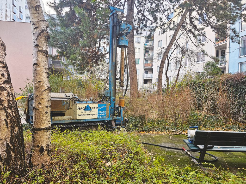 Um einen optimalen Wirkungsgrad von Grundwasser-Wärmepumpen zu gewährleisten, ist ein Mindestabstand der dafür erforderlichen Brunnen von 15 Metern einzuhalten. Im dicht bebauten Grätzl waren daher Bohrungen auf Nachbarliegenschaften erforderlich – ein Grund, im Quartier zu denken und sich mit den anderen Eigentümer:innen im wahrsten Sinn des Wortes zu vernetzen. Optimale Ergebnisse für alle erreichen kann man – wie das Pilotprojekt zeigt – trotz ungleicher Gebäudestrukturen, Sanierungsstadien und verschiedener wohnrechtlicher Regime. Und wenn schon gebohrt und gegraben wird, dann gleich richtig: Im Zuge der Errichtung des Nahwärmenetzes wurde auch gleich die Neugestaltung der Gasse angegangen. Entsiegelte Flächen, neue Bäume. Sitzgelegenheiten, ein Trinkbrunnen und mehr Komfort für Fußgänger:innen kommen allen Anrainer:innen zugute und machen die Klimawende sichtbar.