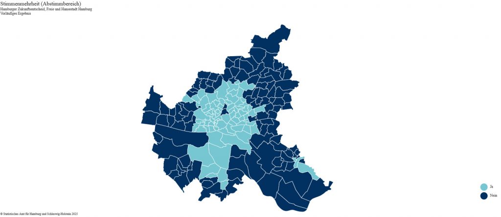 Damit wurde der Gesetzentwurf einer zivilgesellschaftlichen Initiative angenommen, die unter anderem von Fridays for Future und NABU getragen wird. Die Beteiligung lag bei 43,6 Prozent – ein beachtlicher Wert für einen Volksentscheid in der Hansestadt.