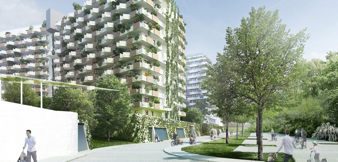 Ein interdisziplinäres Team entwickelte schon zu Beginn einen Qualitätenkatalog für Bebauung und Begrünung. Die Auslobung des Wettbewerbs für das Quartier erfolgte durch die